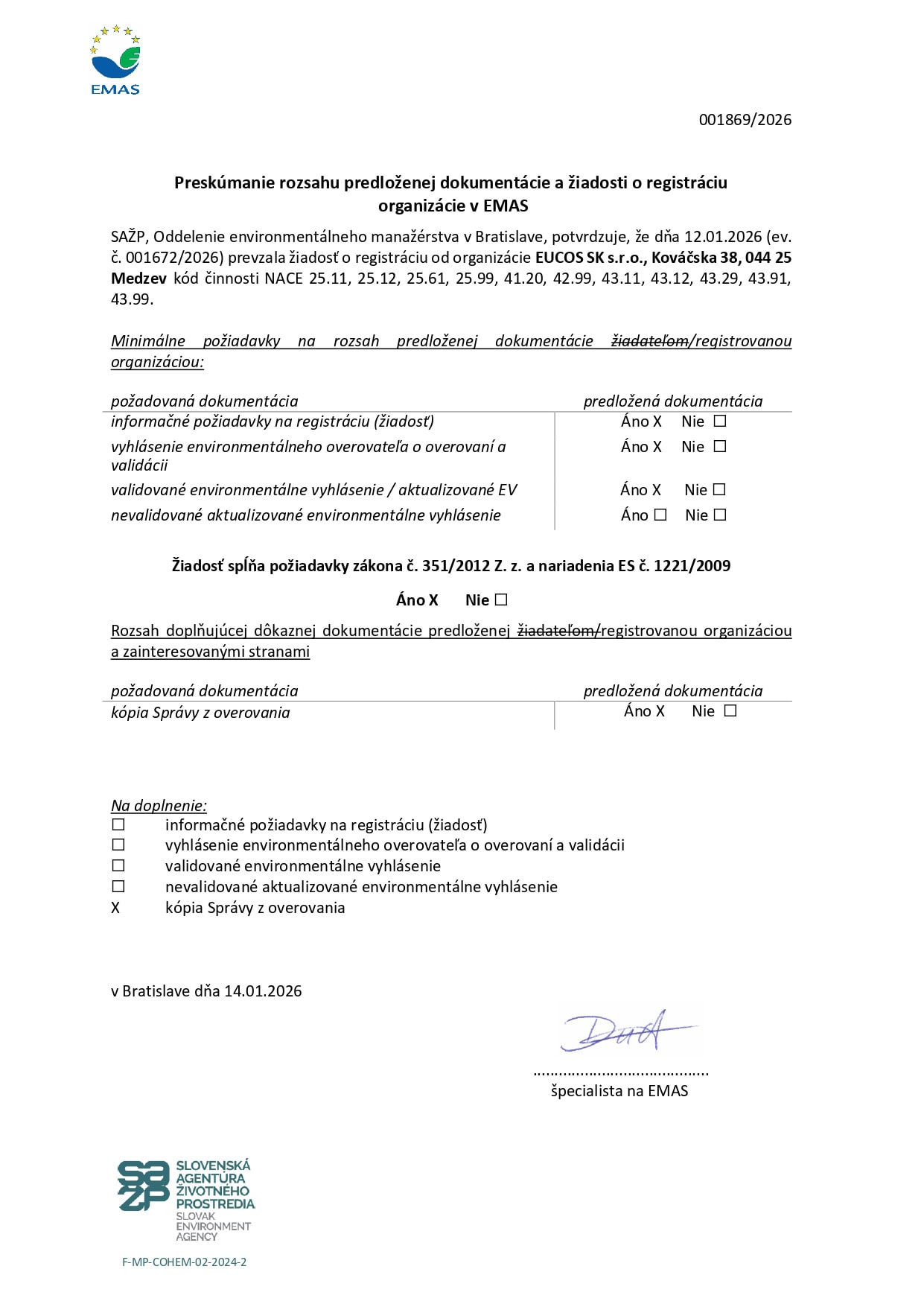 Vlastníctvom certifikátu EMAS potvrdzujeme, že pri výrobe oceľových konštrukcií aj realizácii stavebných diel spájame prísne kvalitatívne a bezpečnostné normy s rešpektom voči životnému prostrediu a lokálnym komunitám.